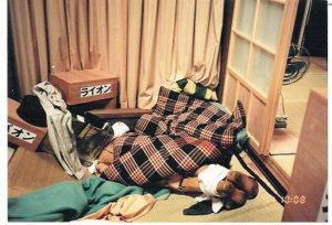 この弁護団ガラス戸の実験に、守る会から私の他に2人、計3人が手伝いに行きました。何を手伝ったかというと、昼食の用意とか、まだまだ暑い9月上旬に行われたため、スタジオ内の冷蔵庫に常にペットボトル飲料を欠かさないようにしておくとか、雑用全般でした。休憩時間は、お弁当の手配やら何やらで忙しかったのですが、弁護団が実験しているときは逆に暇で、スタジオ中を好きなように動き回り、何気なくカバンに放り込んだ小型カメラ(コニカ ビックミニ)で写真をたくさん撮ることができたのです。この記事に出てくるカラー写真は、その時のものです。このビックミニはフィルムカメラゆえ、パソコン時代にほとんど使わなくなっていますが、いまも私の手元にありますし、シャッターチャンスっていつあるか分からいからと、コンパクトデジカメをカバンに入れるようになったのも、この時以降のことです。