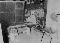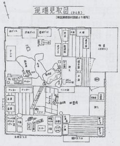 上の写真は、布川事件検証調書添付写真です。床がVの字に落ちているところで、自白では、Tさんが騒ぐので杉山が口に布を詰め、声が出なくなったら足をばたばたさせたので杉山が足を押えて桜井が縛り、杉山がまた向きを変えてTさんの両手を押え、桜井が首を締めた……ということになっています。